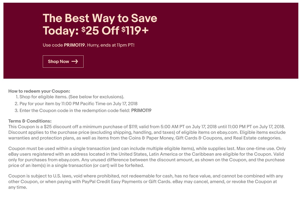 Ebay coupon code may